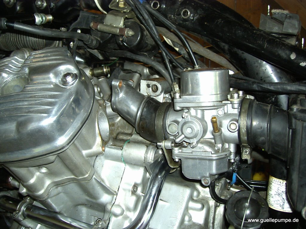 Ansaugstutzen kann jetzt nach oben weggedreht werden. Abbau nicht nötig, auch die Vergaserbatterie kann sitzen bleiben und ggf. später leichter aubgebaut werden.